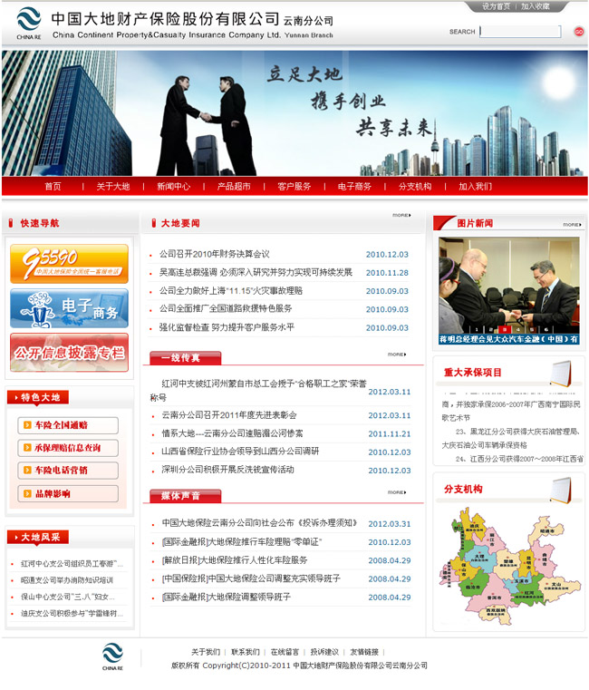 致力于建设独具特色的服务体系是公司业务跨越式发展的致胜法宝。2005年,开业第二个完整经营年度即开通了全国统一客户服务专线95590;2007年9月,实现了车险全国通赔,并同时开通了“赔案在线查询”系统,成为业界唯一提供“赔案在线查询”特色服务的保险公司;2008年,公司开展了“客户服务年”活动,把车险通赔和赔案在线查询特色服务延伸到了县级机构,运营中心建设全面启动,客户服务标准日趋统一规范,为公司业务发展和市场开拓提供持续支持。